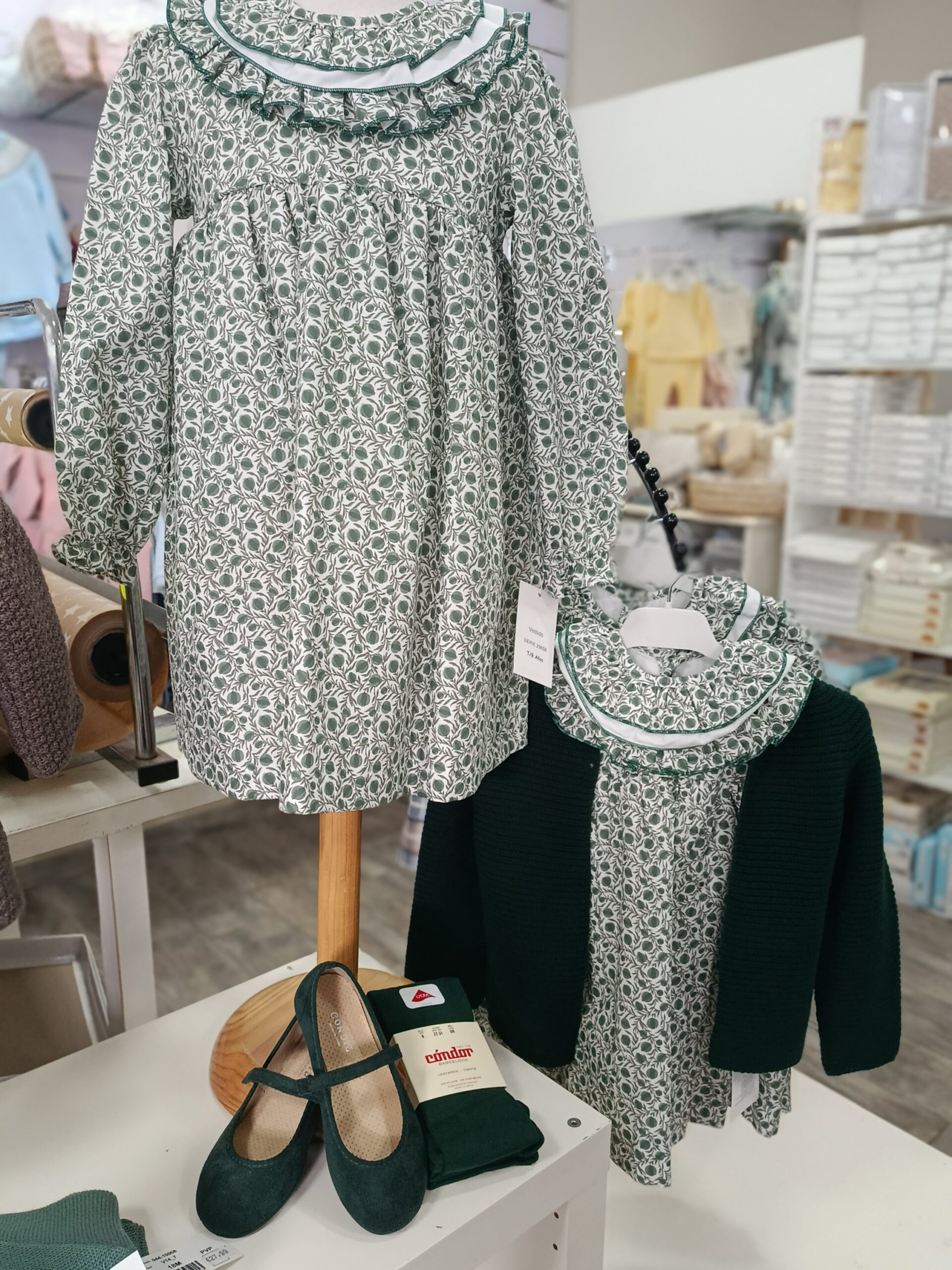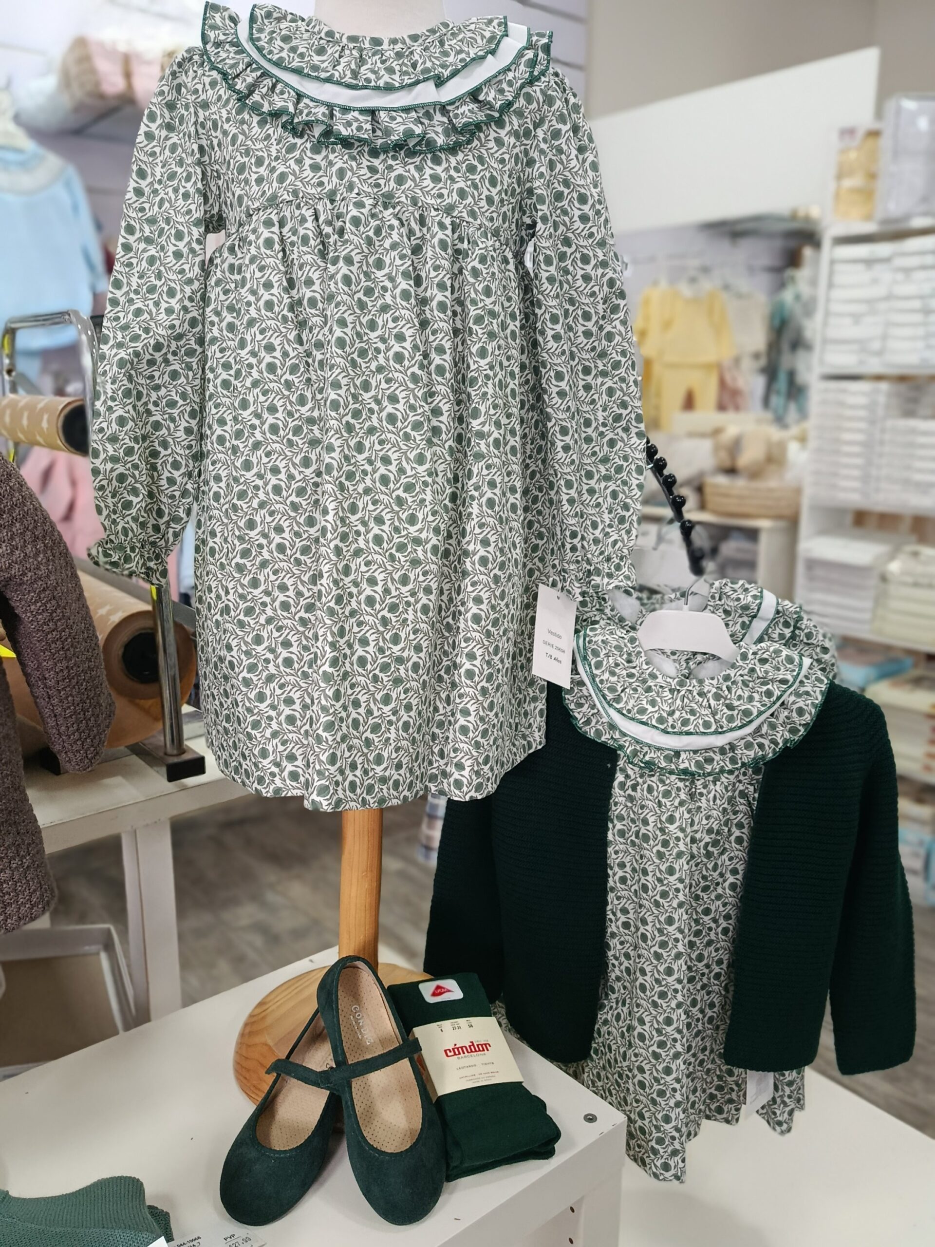 precioso vestido en tonos verde.botella con cuello .